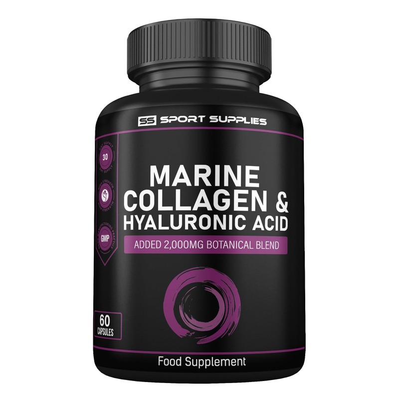SS Sport Supplies Collagen Supplements for Women-100% Marine Collagen Boosted with Hyaluronic Acid, Vitamin C, Niacinamide & 2,000mg Botanical Blend including Lions Mane, Ashwagandha, Maca and Psyllium Husk-60 Capsules
