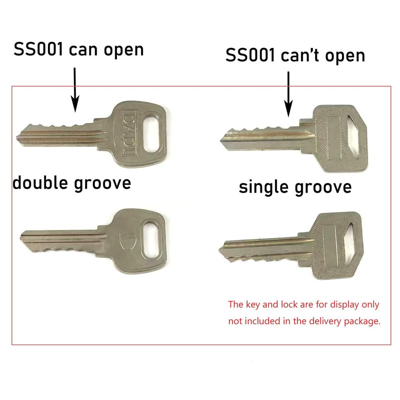 - Please note that the keys and locks shown in the picture are for display only and are not included in the shipping package. The package only has SS001 tool available