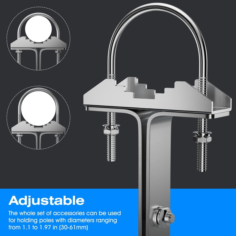 - Spotlight Feature: Life-long service life, the complete sets are made of 304 stainless steel including braces,U bolts,Jaws,bolts ,washers,nails and every part.It gives no chance for rust and corrosion for a real life long service.