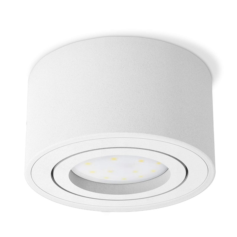 - Extra flat and swivelling surface-mounted spotlight with matt white surface with socket for 1 x LED module (not included)