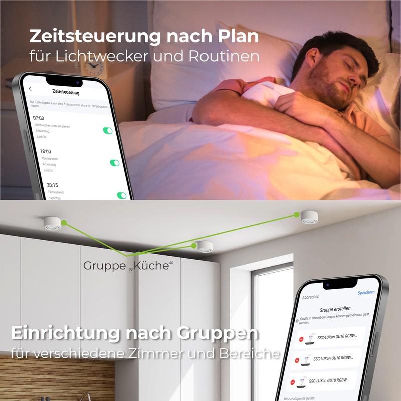 • Control the light in your home via smartphone or voice command via WiFi - create wonderful atmospheres with RGB+CCT light