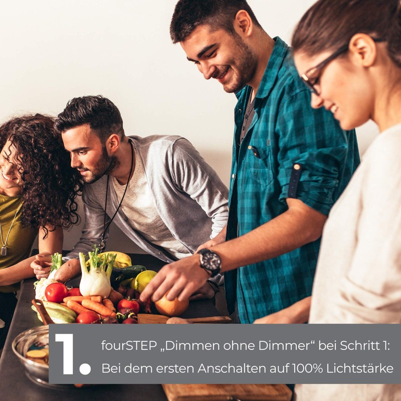 - FourSTEP dimming without dimmer - simply explained: dim the light with any normal light switch or button