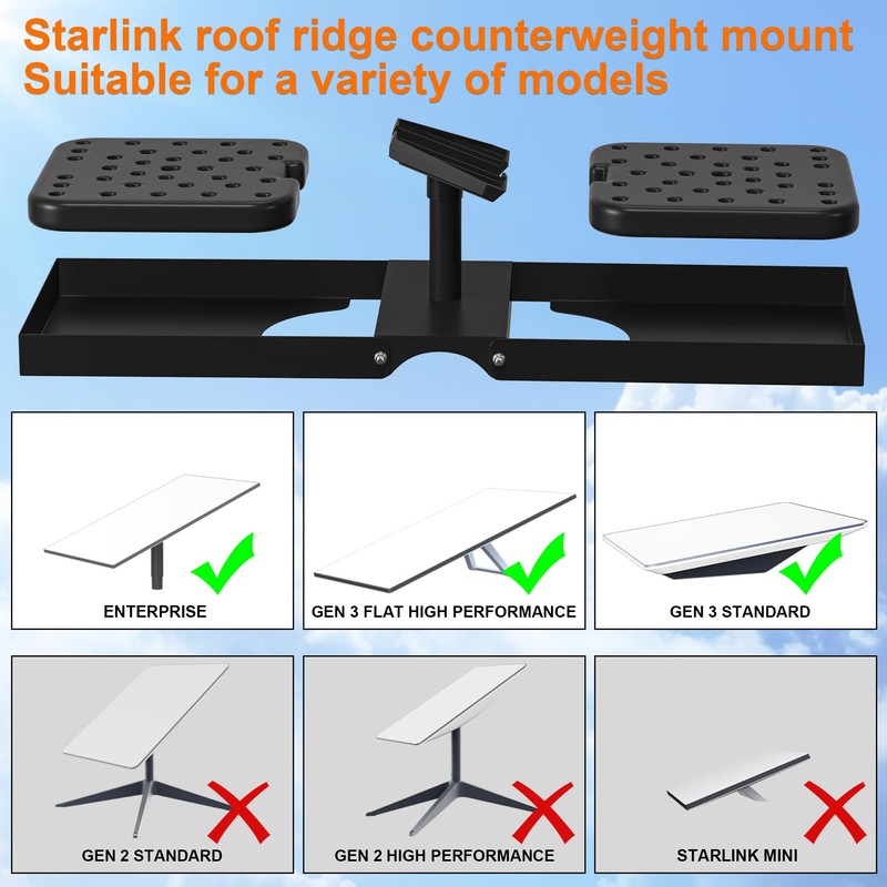 - 【Starlink Ridge Roof Mount with Pipe Adapter and Counterweight 】This Starlink mounting kit includes mount with pipe adapter and counterweighted panels for Starlink gen 3,and it provides all the necessary tools for ridge installation,user-friendly design saves you time and effort.
