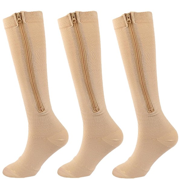 SSDH Compression Socks with Zipper, for Women and Men 20-30 mmHg,Knee High Long Stockings is Best for Varicose Veins. (as1, alpha, xx_l, regular, regular, Beige)