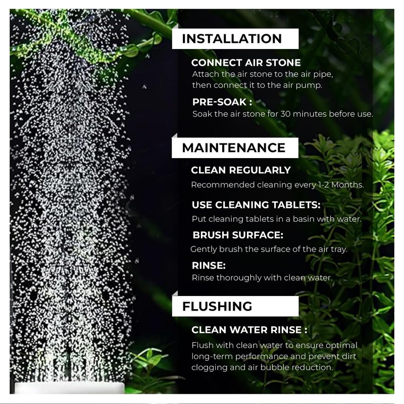 - The smooth surface of our air stone makes it incredibly easy to clean. Simply soak aquarium bubbler in vinegar to remove mineral build-up and restore its functionality. Low maintenance ensures that you can focus on enjoying your aquarium without worrying about regular upkeep