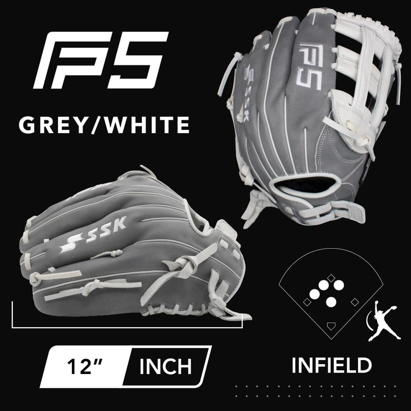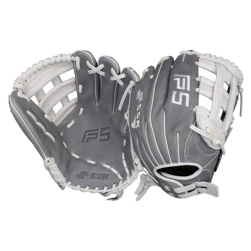 SSK FP5 Fastpitch Softball Glove – Infield - Outfield - Pitcher – 11.5”-11.75”-12”-12.25”-12.5”-12.75”-13”– Right & Left Hand Throw (Grey/White - H Web, 12" - Left Hand Throw)
