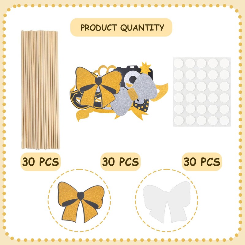 Package Includes: Photo booth props mix comes with 30 different stylish and funny patterns props, such as lipsticks, wine glasses, crowns, "Cheers" banners, fake beards, glasses, bow ties, cameras, ties, arrows and so on, enough quantity and rich styles to meet your need.