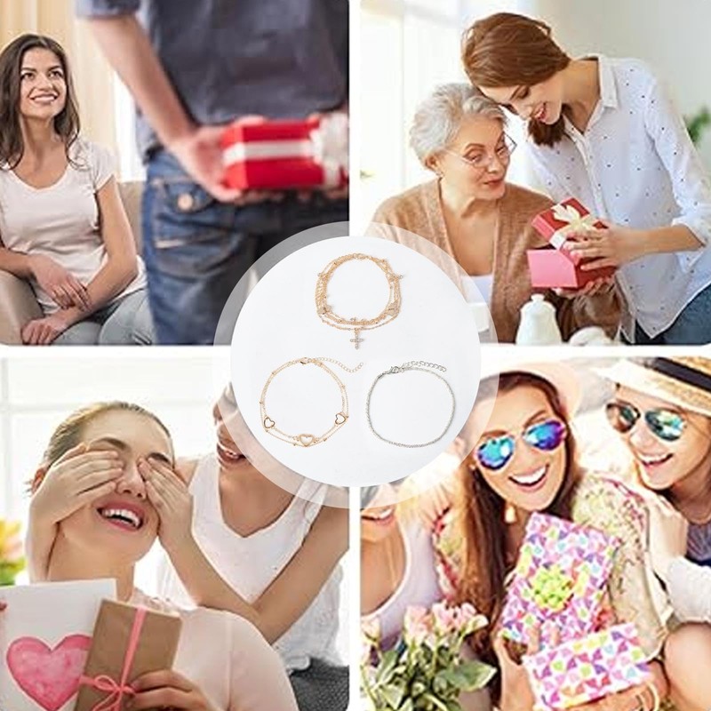- IDEAL GIFT: These three exquisite anklets in different styles and colours can be matched differently every day, perfect gift for outdoor activities such as summer beach trips and daily wear. Make you extra special in the crowd.