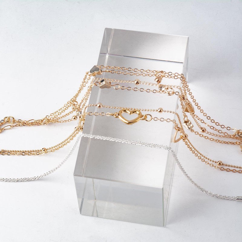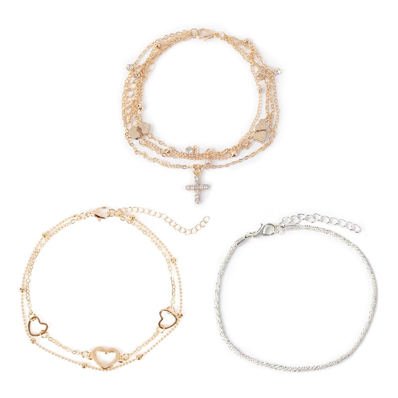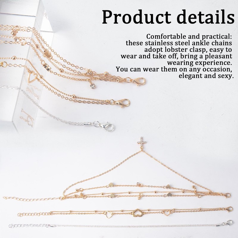 - PRODUCT INCLUDES: Our this product includes three anklets with different shapes and colours, individually packaged, a golden figure of eight anklet, a silver double-layer anklet, and a golden four-layer cross pendant anklet.