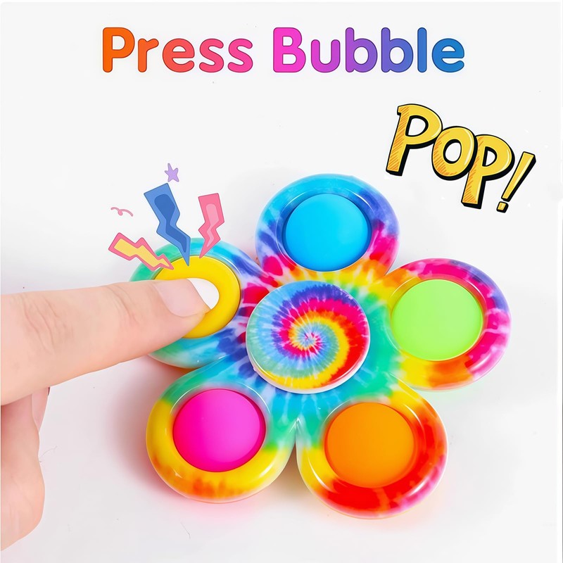 - Pop fidget spinner package includes: This popper fidget spinner children's set contains four colourful press and spin toys, each sensory toy has been designed with bright and different colours to effectively attract children's attention.