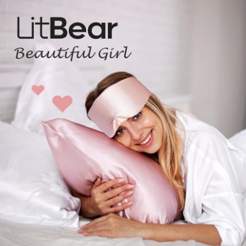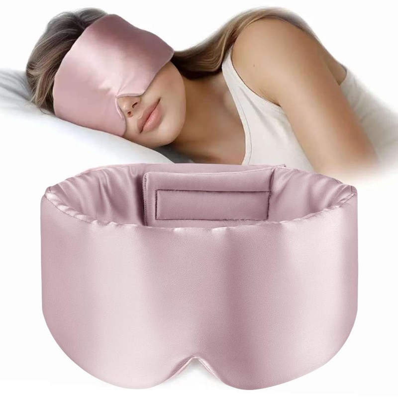 SSKHE Silk Sleep Mask for Women Men, Satin Blackout Eye Night Mask Headband with Kids for Home Sleep Travel Shift Work Nap Yoga Snooze Soundproof Cooling for Airplane Essentials (Pink, One Size)