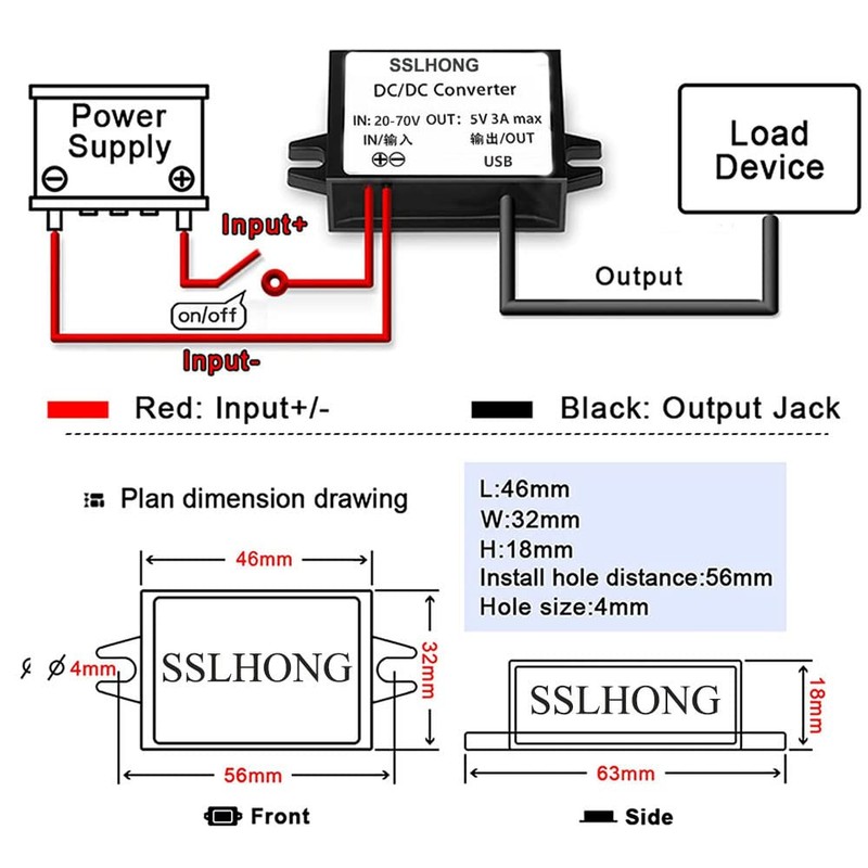 SSLHONG DC DC 20-72V to 5V Power Adapter Converter Micro USB Output 12V 24V 36V 48V 60V to 5V 3A 15W Step-Down Module Waterproof Transformer (Micro)