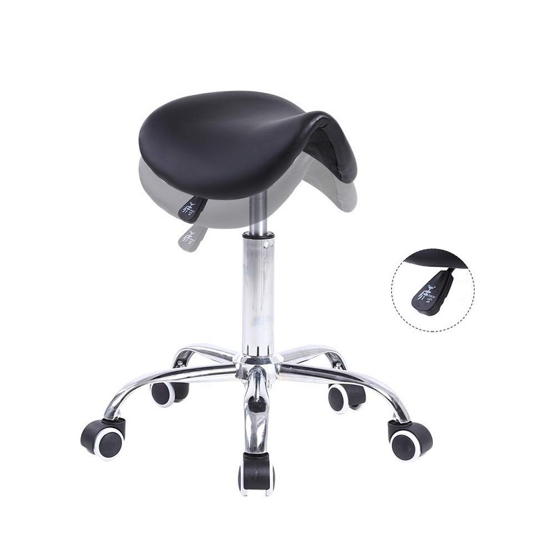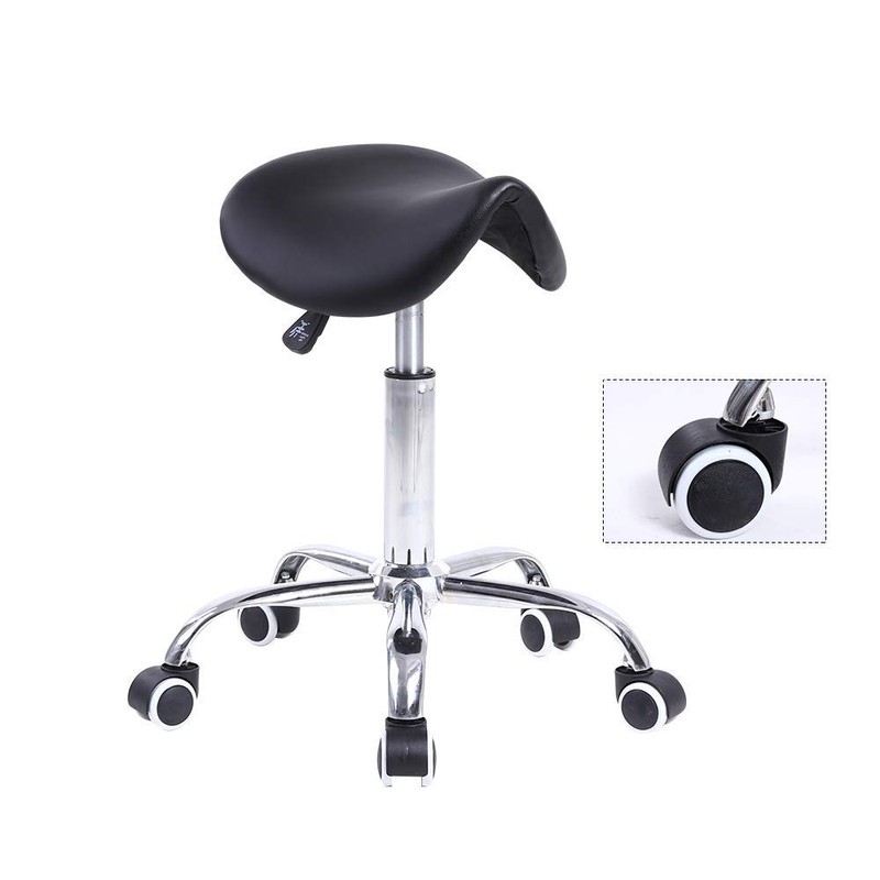 SSLine Adjustable Saddle Rolling Chair, Hydraulic Stool with Wheels, Swivel Salon Massage Spa Seat Tattoo Chair Saddle Stool (Black)