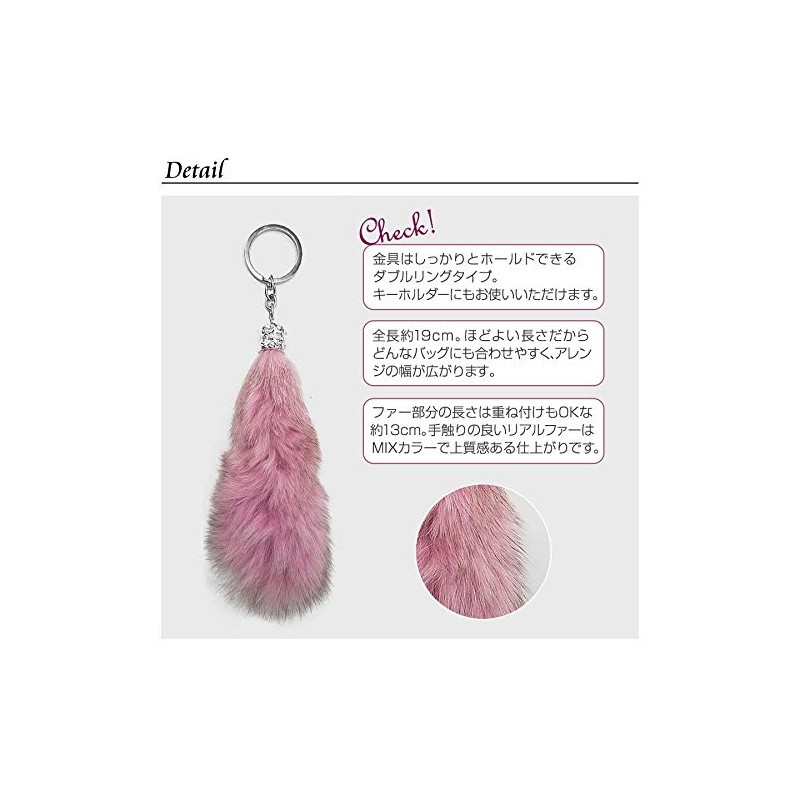 sslink Bag Charm, Fur Tail, Slightly Mixed Keychain, Rabbit Fur, Real Fur, Tail, Silver, Chain, Key Ring, Key Charm, Back, orange