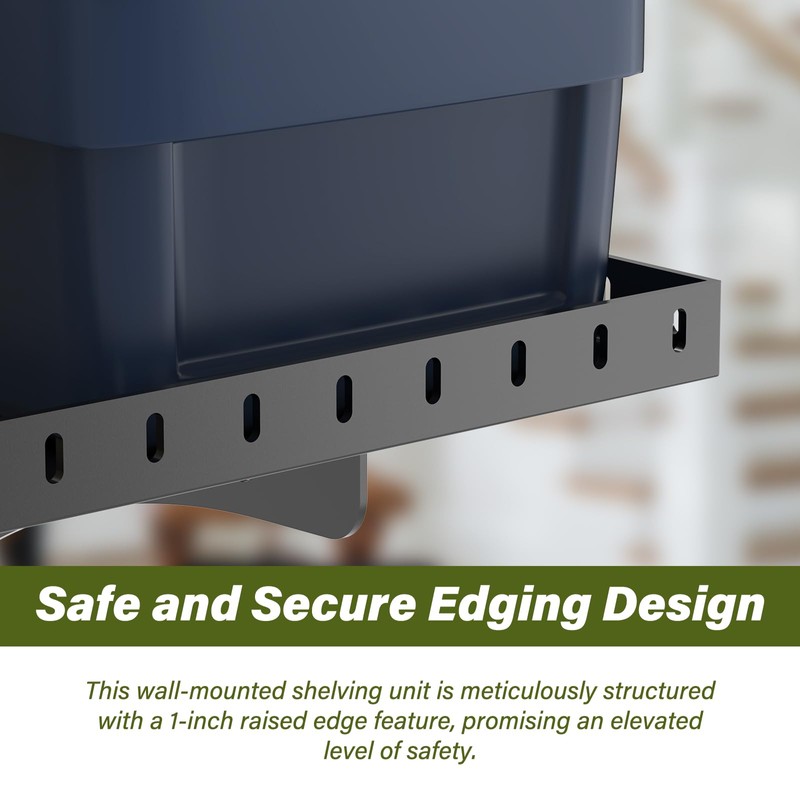 - Safe & Secure Edging: This wall-mounted shelving unit is meticulously structured with a 1-inch raised edge feature, promising an elevated level of safety. It confidently safeguards your belongings from slipping off, offering a serene, free-of-worry storage alternative.