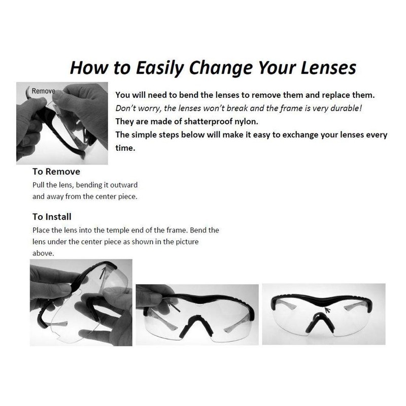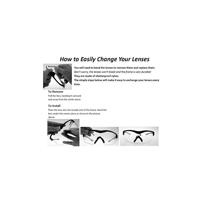 - Lenses ship with a microfiber pouch and a clear, adjustable nose pad