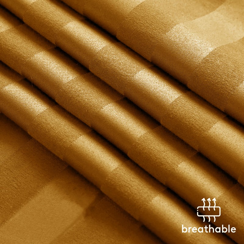 SSW HOMES King Size Duvet Cover Sets Satin Stripes Quilt Cover Bedding Sets with Pillowcases Hypoallergenic Ultra Soft Microfiber (Ochre, 220 x 230 cm)