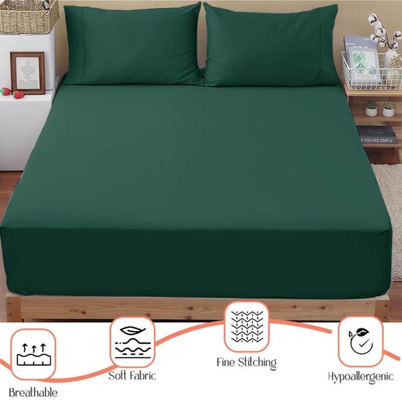 SSW HOMES Super King Fitted Sheet Emerald - Deep Pocket 16 inch(40cm) - Soft Easy Care Brushed Microfiber Plain Bed Sheet - Hotel Quality Shrinkage and Fade Resistant Bedding