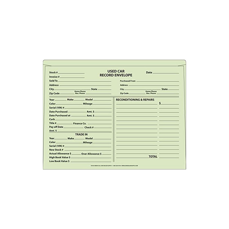 - Track each vehicle’s information using the Economy Vehicle Deal Jacket!