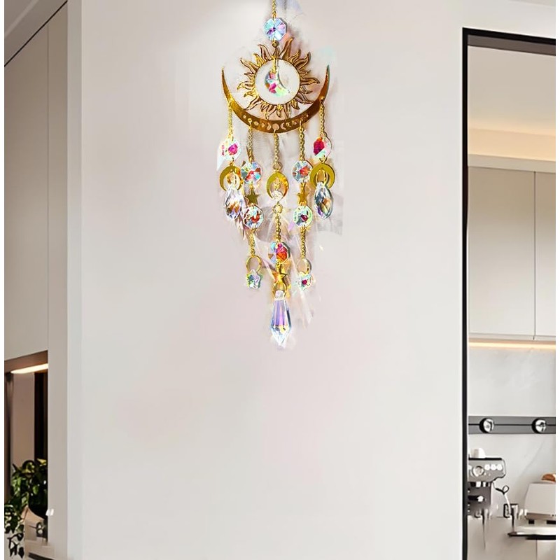 - Sunlight Capture The multifaceted crystal prism lets the captured sunlight shine onto your room and projects sparkling colored dots onto walls and floor. The circular design around the crystal shows the beauty of fashion.