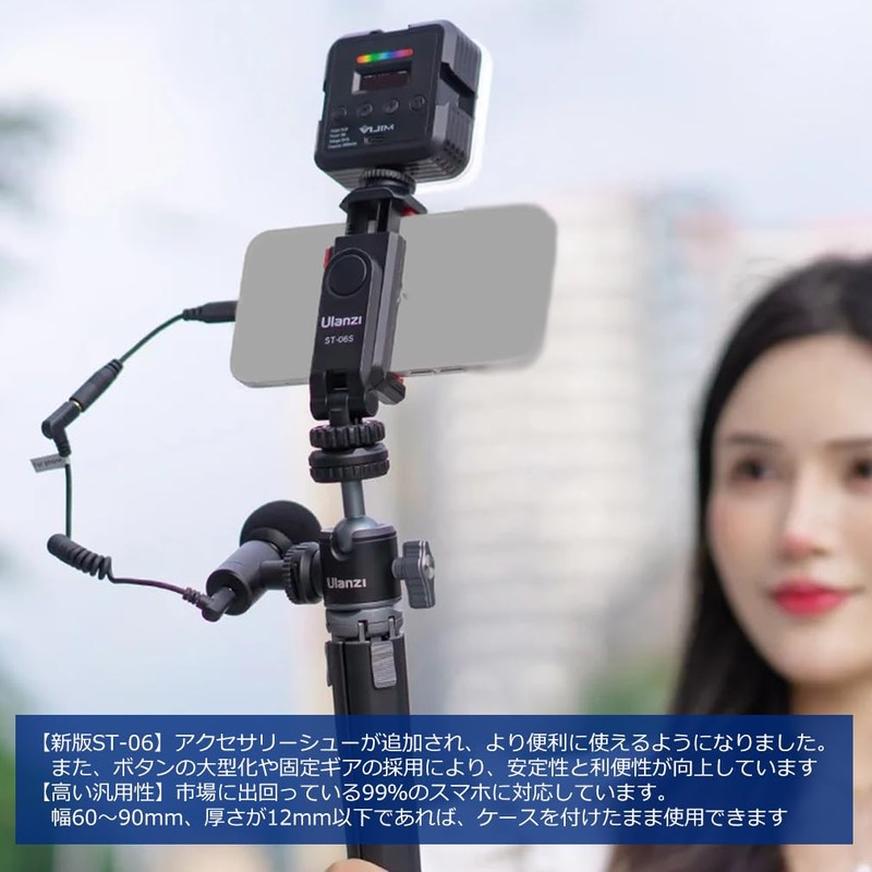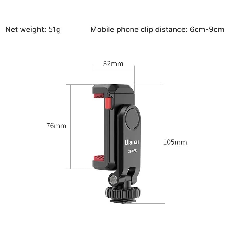 ST-06s Audio Fan Camera Smartphone Monitor Mount, 360° Rotation, Angle Adjustment, Smartphone Holder, Accessory Shoe Included, Vertical Bracket, 1/4 Screws, Smartphone Tripod, Camera/SLR/Mirrorless