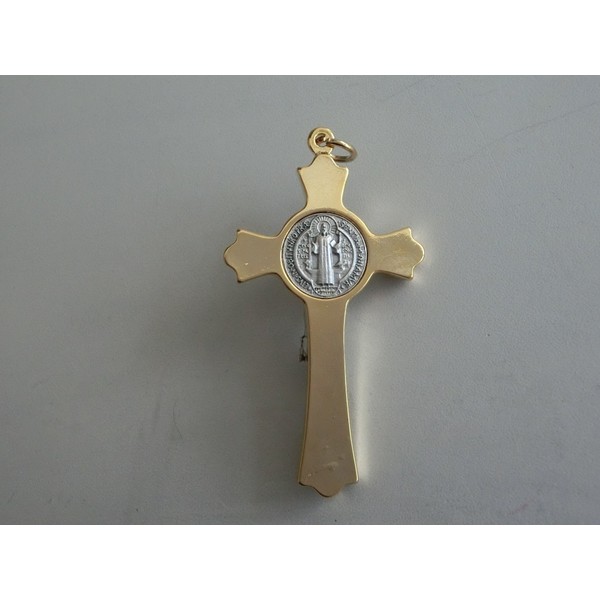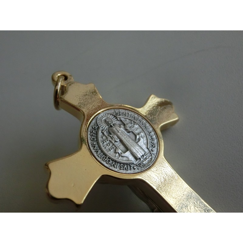 St Benedict Cross 8cm Gold Plated with Black Stripes and Ring