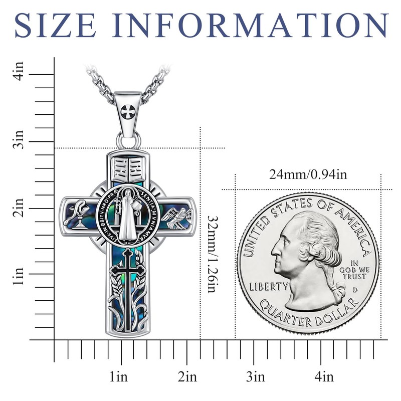 St Benedict Medals Medalla de San Benito San Benito Medalla Mens Womens Crucifix Necklace Pendant Sterling Silver Abalone Shell Saint St benedict Medal for Car