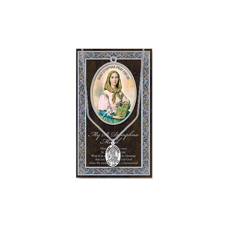 St Dymphna Pendant Medal Pewter on 18 inch Stainless Chain with Prayer