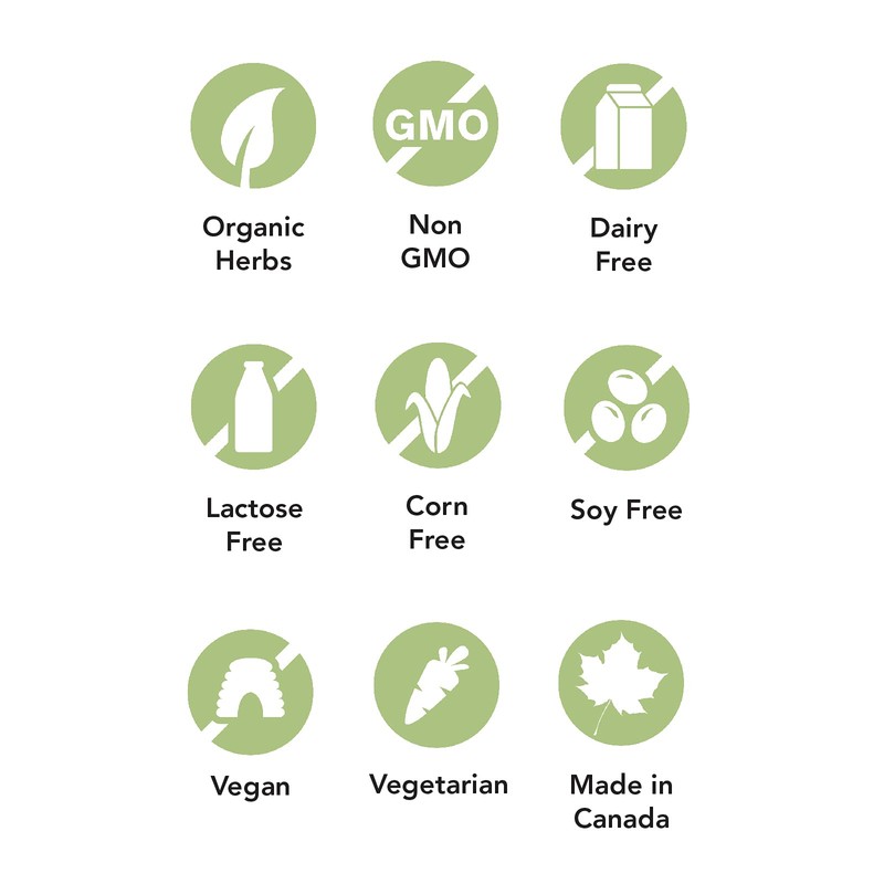 - Top Attributes: Organic herbs, Non GMO, Dairy Free, Vegan. Made in Canada.