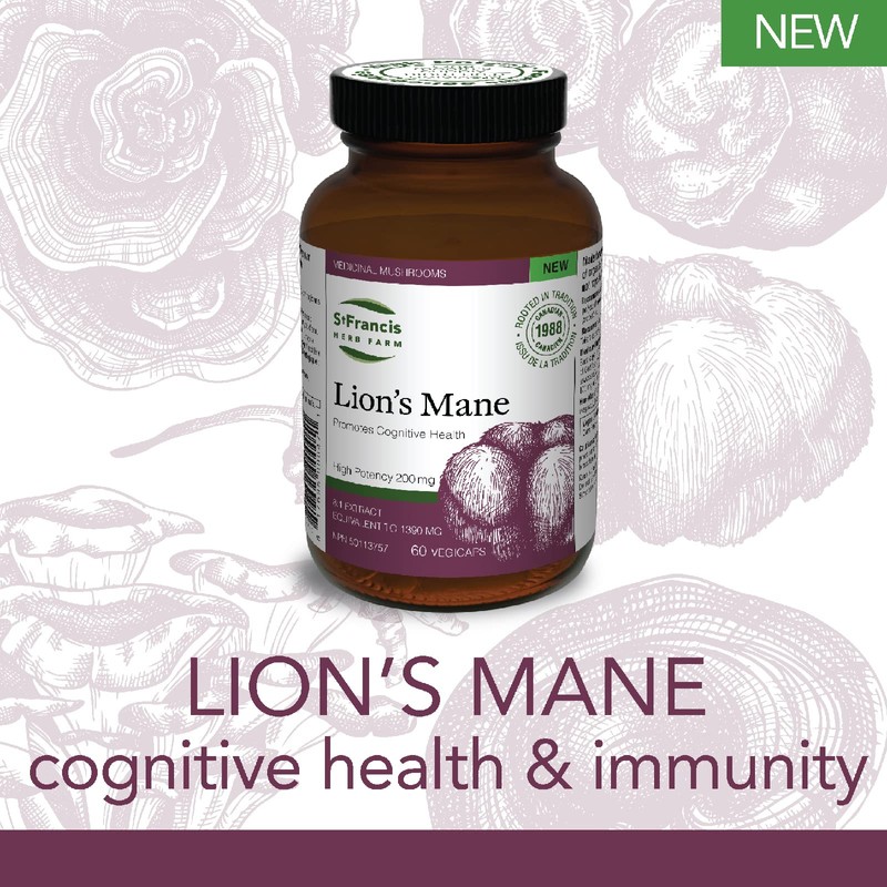 St. Francis Herb Farm Lion's Mane Mushroom Capsules | 100% Pure | High Potency | Memory Support & Mental Clarity | Fruiting Body | High in Beta Glucans | 60 Vegicaps