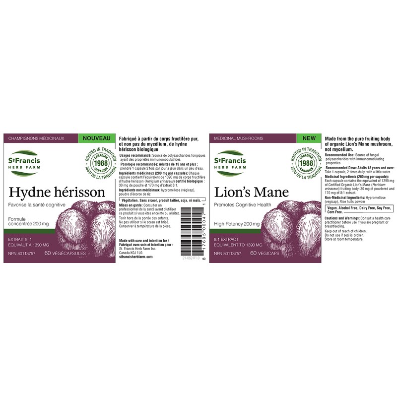 Who It's For: Adults Use For: Memory support, imroving mental clarity, and immune system health How It Works: Mushrooms are adaptogens that regulate bodily systems back into balance, where they are at their strongest. Choosing the right mushroom supplement is critical to obtaining the benefits. There can be vast differences between mushroom supplements, which is why we encourage you to compare. St Francis Medicinal Mushrooms: 1. Are made from the mushroom itself, also referred to as the fruiting body, on which the vast majority of research is based. They are not made from mycelium (a root-like structure), which indeed is not mushroom, nor has it been properly researched. This also means that there is no supplementation of grain as a major ingredient. 2. Are third-party tested for beta glucans - the proven immune supportive active component. Based on the science, there is no dispute that these are essential - and we test to ensure sufficient levels and communicate this clearly. 3. Provide maximum bioavailability. They are not dried mushrooms ground up, a form that makes it challenging for the body to access the key medicinal components, no matter how small they are ground/micronized. They are mushrooms that are put through an extraction process multiple times in order to provide the critical components in a form that maximizes the body's ability to absorb them. For Lion's Mane, the extraction process takes 1360 mg of dried mushroom down to 170mg of high potency extract (8:1 extract). This provides an additional benefit of providing you a therapeutic dose in only 2 capsules per day. It is therefore very important to check how many days’ supply are in a bottle to determine the price per day, to be able to properly compare. Ours are 1 bottle = 30 days/1 month's supply.