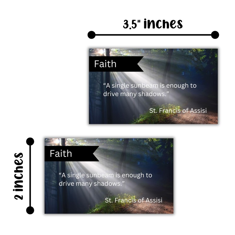 - Inspiring Catholic Quote: Featuring the motivational words of St. Francis of Assisi, "A single sunbeam is enough to drive many shadows," these cards offer a beautiful reminder of the power of light, positivity, and faith, deeply rooted in Catholic teachings.