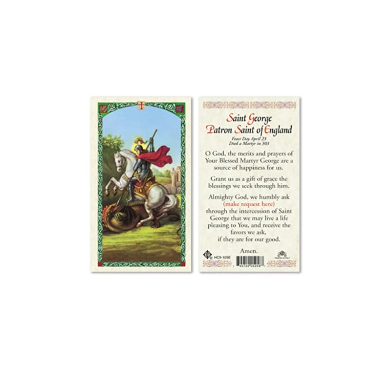 • PRAYER ON BACK: a prayer for the intercession of St. George is printed on the back of the card