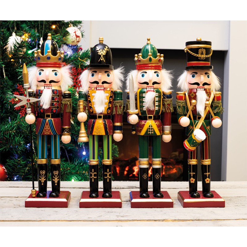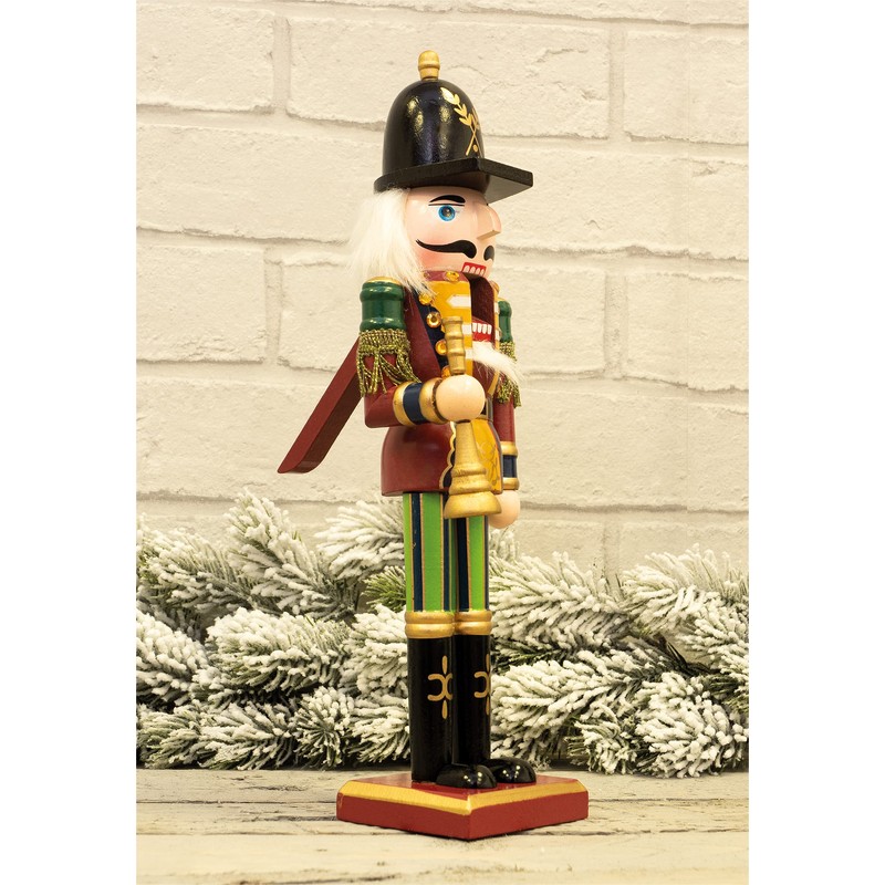 St Helens Home & Garden Nutcracker with Horn Christmas Decoration 30cm Height - Wonderfully Festive with Vibrant Colour Detail