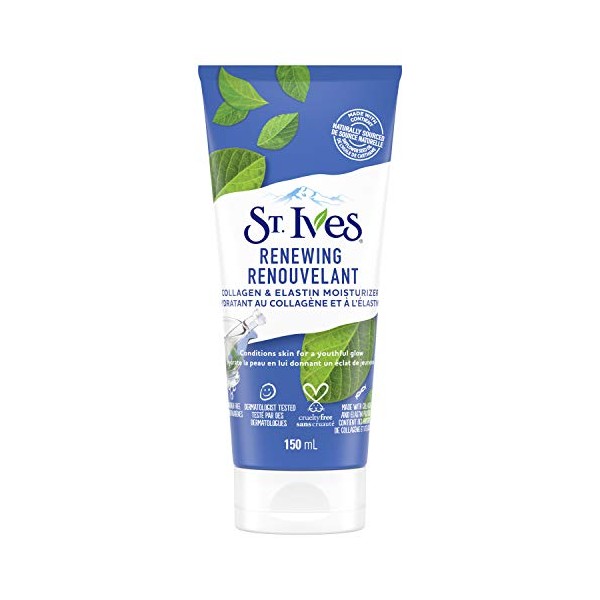 - St. Ives Renewing Collagen and Elastin Face Moisturizer is made with 100% naturally sourced safflower seed oil