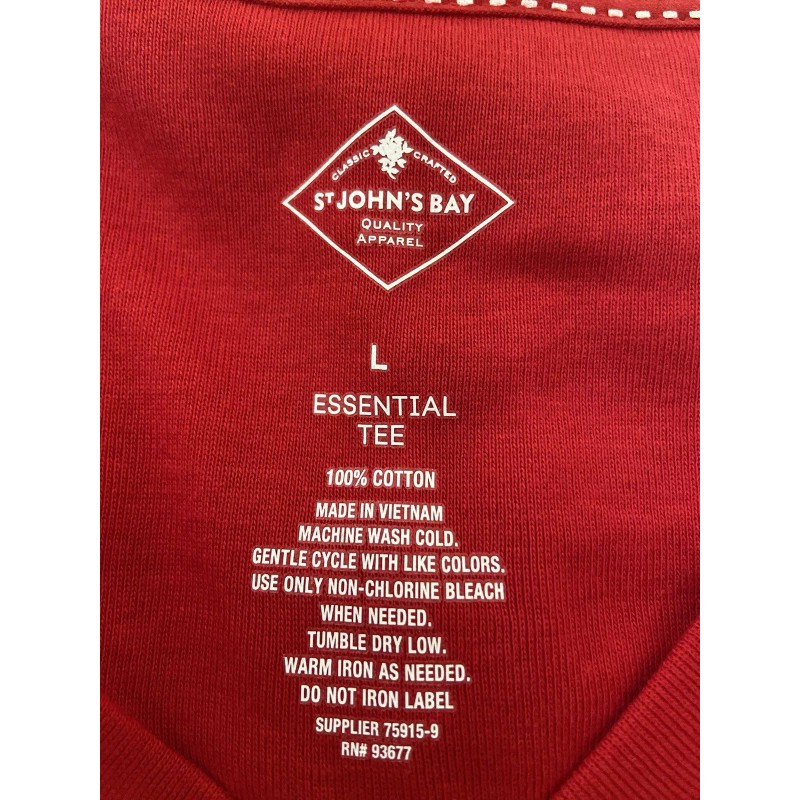 Elevate your casual wardrobe with this red St. John's Bay cotton top. Designed with a V-neckline and 3/4 length sleeves, this top is perfect for a relaxed day out. Made from 100% cotton, this machine washable top is easy to care for and features a solid pattern that can be paired with jeans, shorts or pants for a complete look.