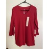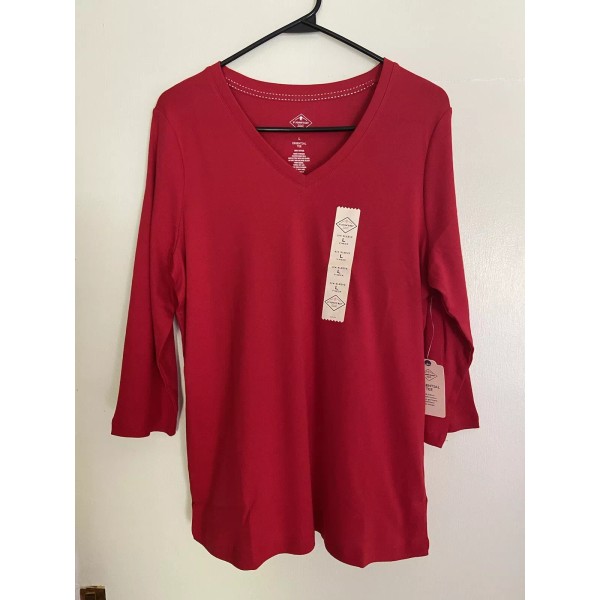 St. John’s Bay V Neck~3/4 Sleeve~Cotton Top~Red~Size Large~NWT