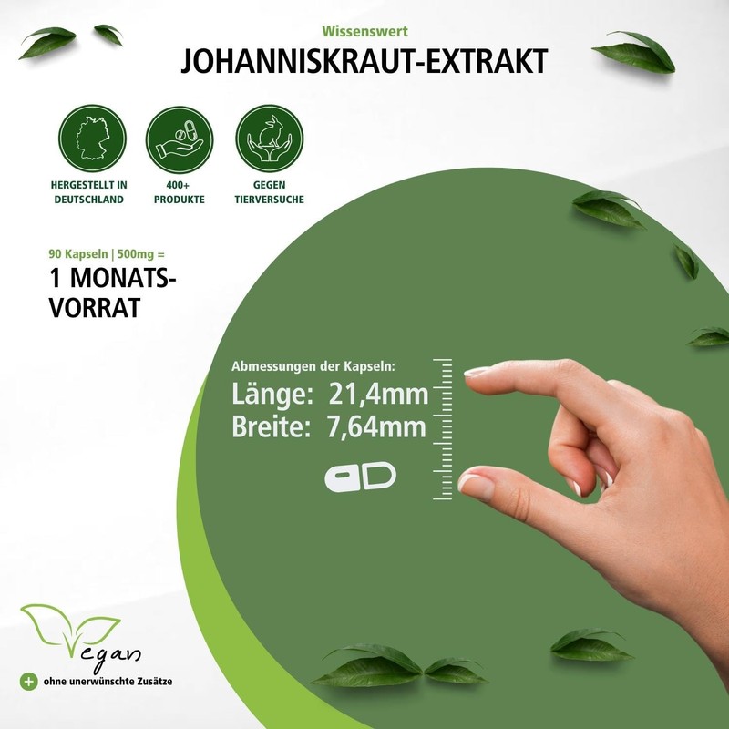St. John's wort extract 500 mg, with hypericin, vegan, 90 capsules