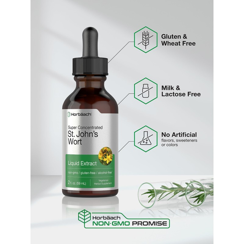 Horbäach St Johns Wort Tincture | 2 Fl Oz | Alcohol Free | Vegetarian Liquid Extract | Non-GMO, Gluten Free Supplement