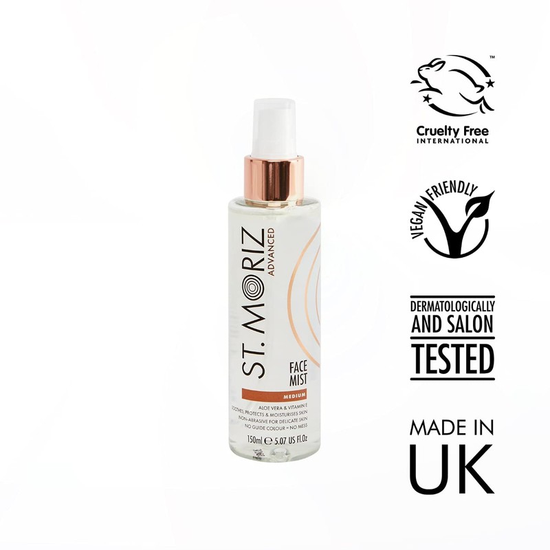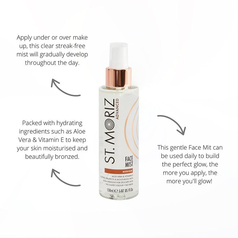 St Moriz Advanced Instant Tanning Face Mist with Aloe Vera & Vitamin E, Fast Drying Vegan Fake Tan, Medium (150ml)