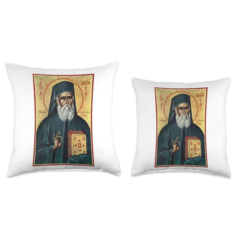 St. Nektarios of Aegina Greek Orthodox Byzantine Art Easter Throw Pillow