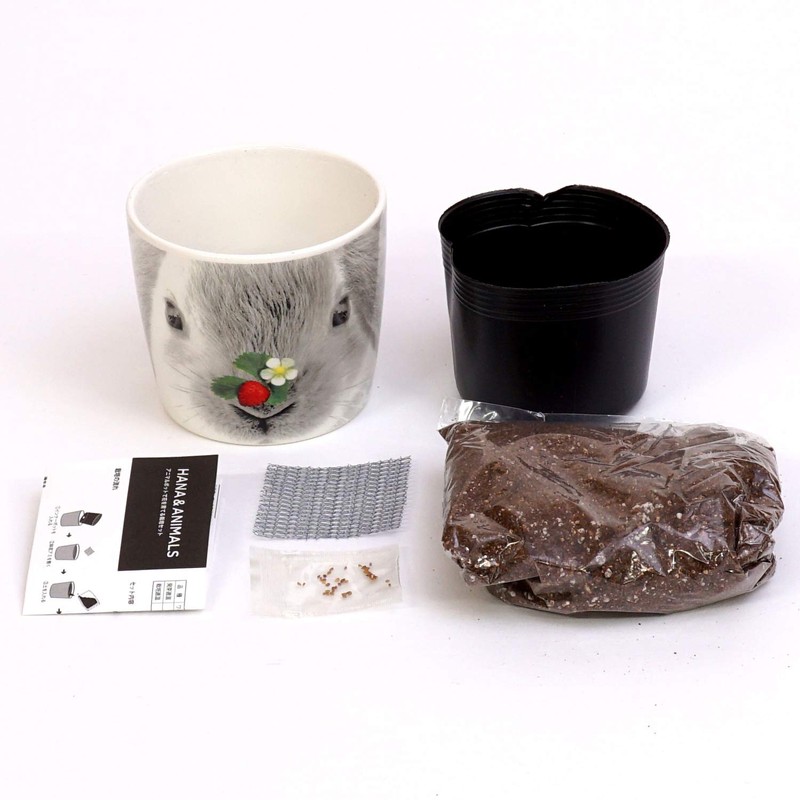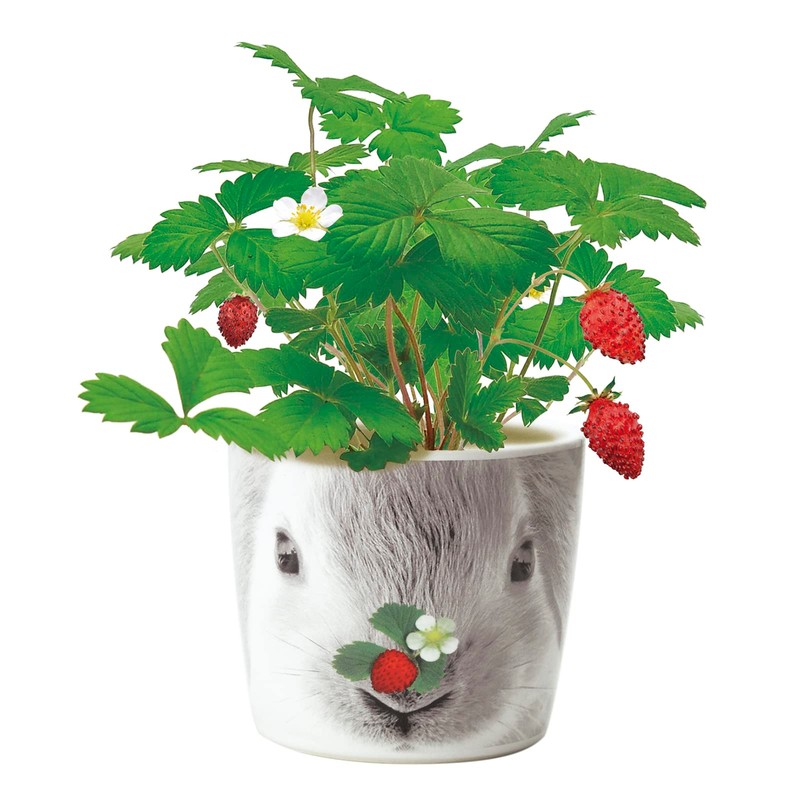 - Wild Strawberry Growing Set with Ceramic Pot with Rabbit Pattern