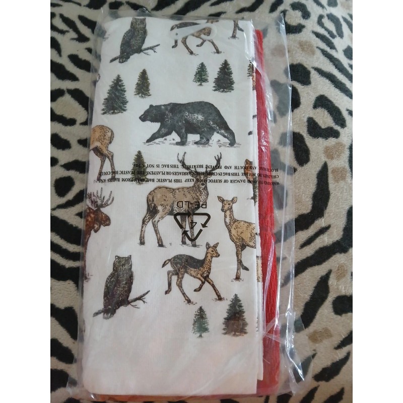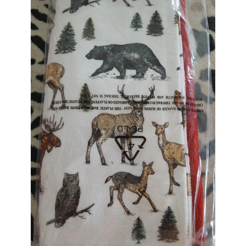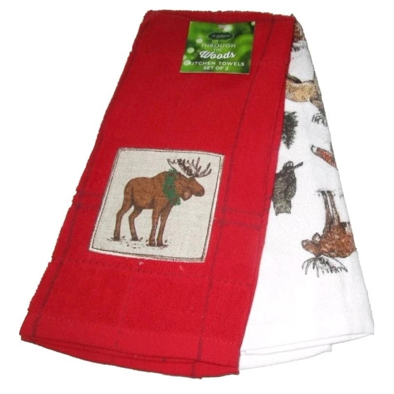 Add a touch of nature to your kitchen with these rustic towels from St Nicholas Square. The set includes two kitchen towels featuring a charming moose and forest animal pattern, perfect for Christmas or any lodge-style kitchen. Made of 100% cotton, these towels are machine washable for easy care and maintenance. Measuring 16.5" x 26", they are large enough to use for drying dishes or wiping up spills. The multi-color design adds a cozy touch to your home décor. These kitchen towels are an excellent addition to any rustic or lodge-style home.