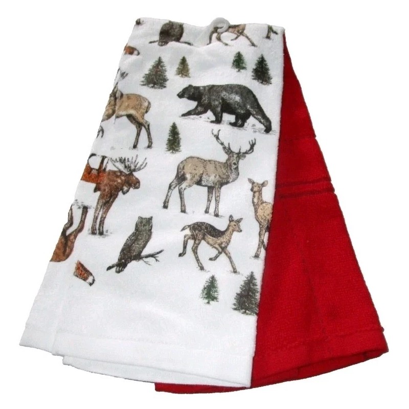St Nicholas Square RUSTIC TOWEL - 16.25" x 26" - Set of 2 - MOOSE & FOREST ANIMALS - 100% Cotton