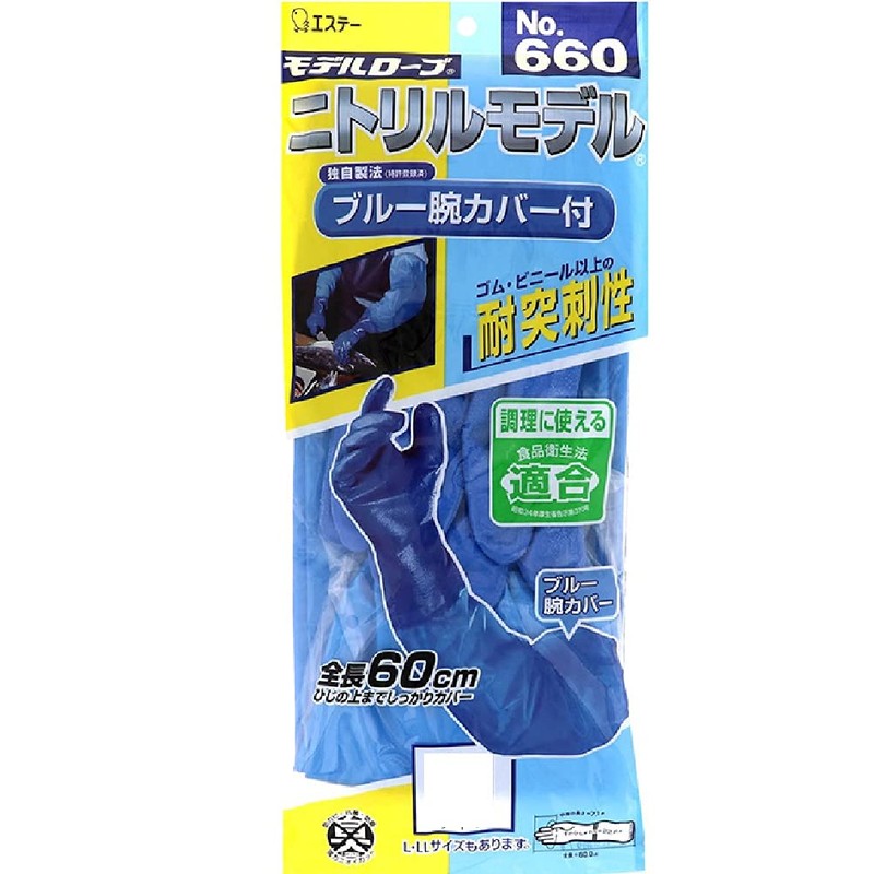 St No. 660 Nitrile Gloves with Arm Cover, Oil Resistant, Thick Type, Large, Pack of 5 Pairs