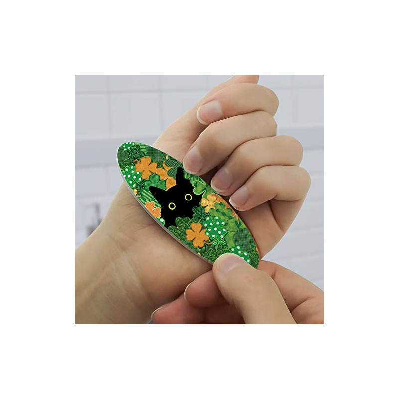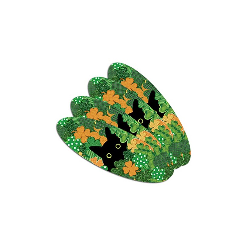 St. Patrick's Day Black Cat Shamrock Double-Sided Oval Nail File Emery Board Set 4 Pack
