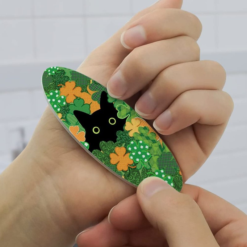 St. Patrick's Day Black Cat Shamrock Double-Sided Oval Nail File Emery Board ...