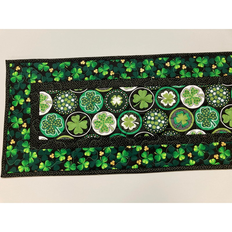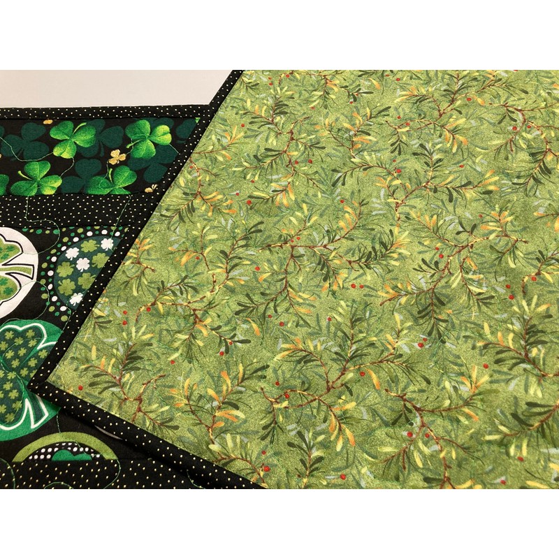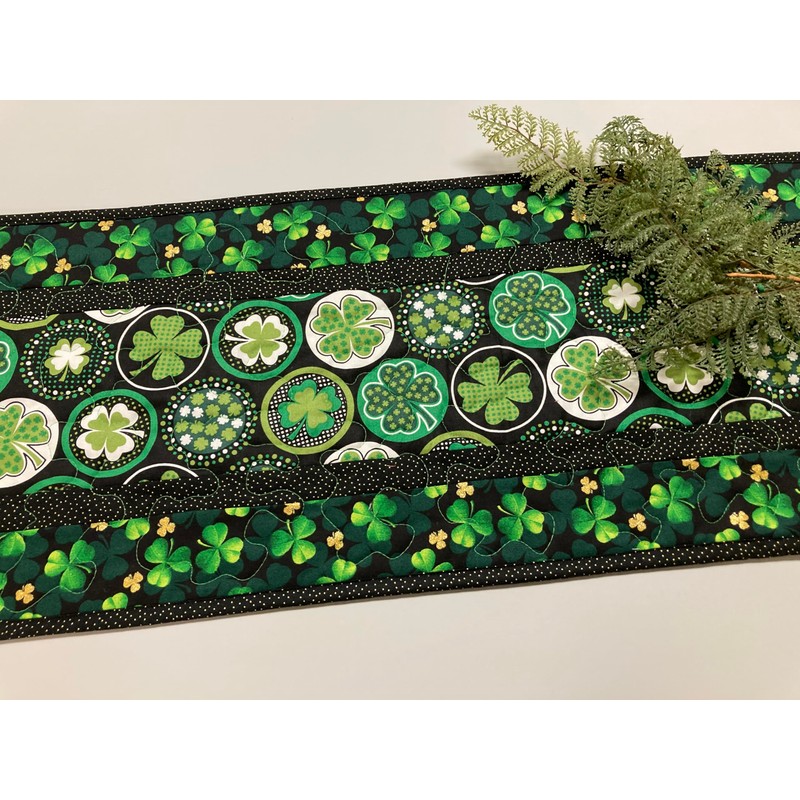 St Patrick's Day Green Gold Shamrock Quilted Dining or Coffee Table Runner, 13x42" Reversible Spring Summer, Handmade St. Paddy's Mat TahoeQuilts Handmade
