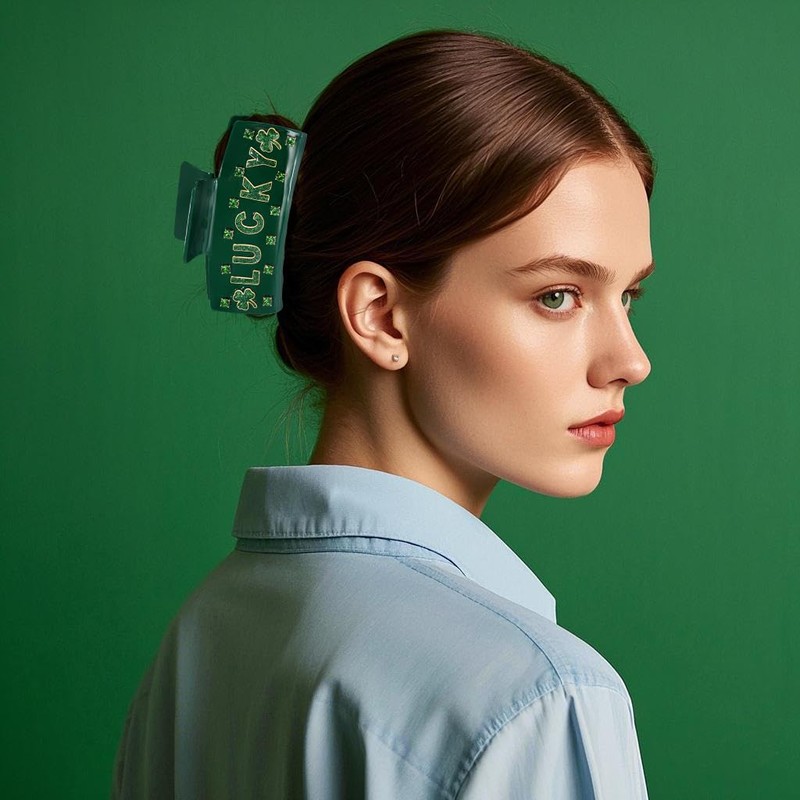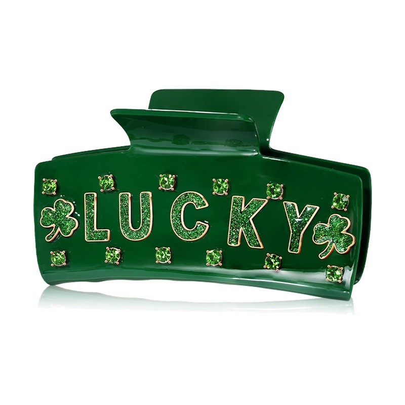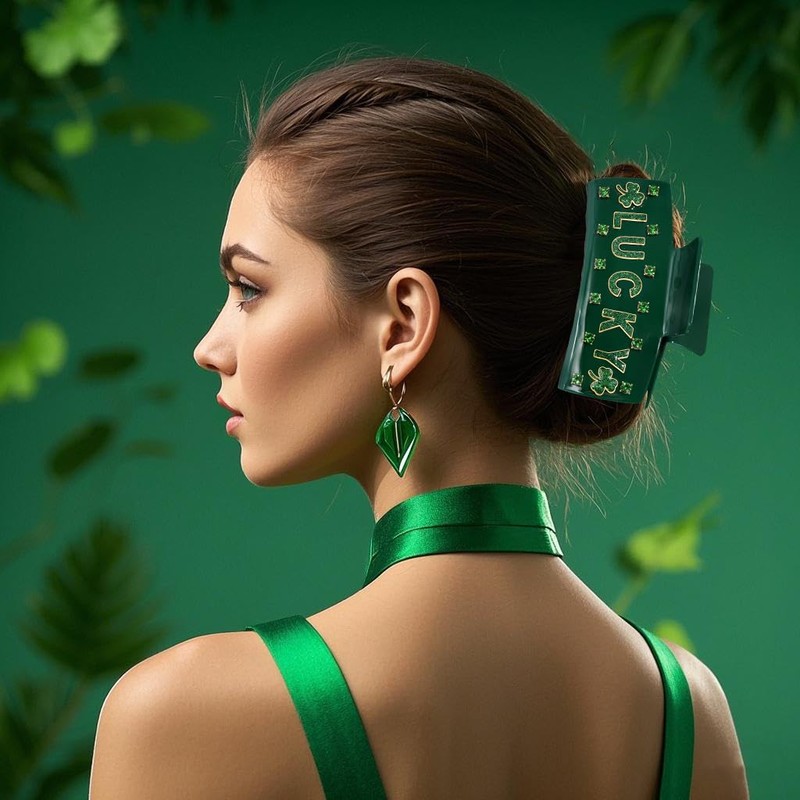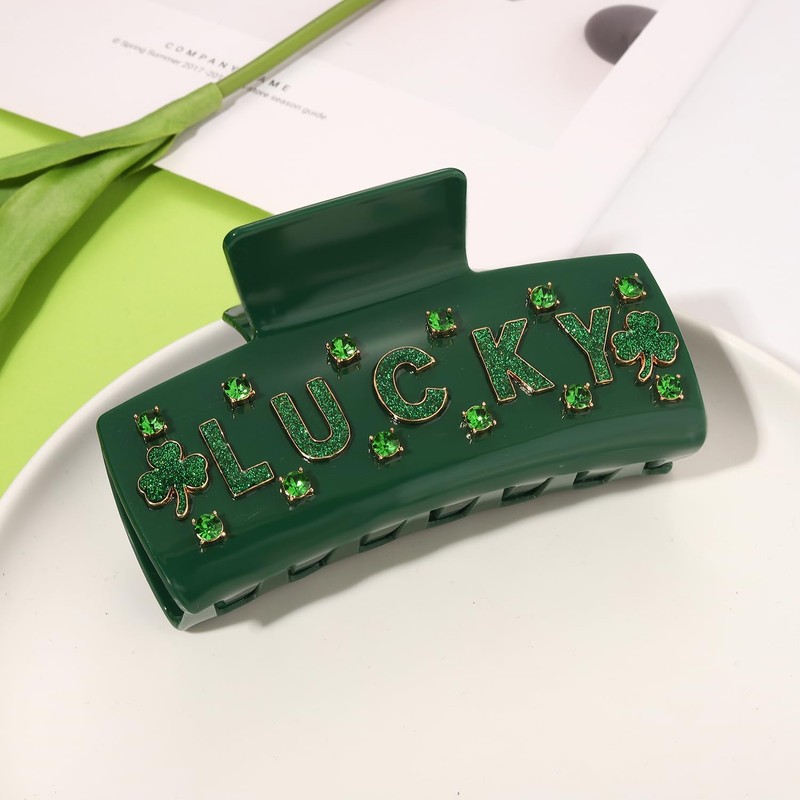 - ღ St. Patrick's Day Hair Claw: Celebrate St. Patrick's Day in style with our dazzling green Hair Clip! Features large hair claw with accent gemstones pearls and enamel charms like shamrock, letter ‘LUCKY’, and letter ‘IRISH’, which can bring luck, health, true love, and happiness, perfect for jazzing up your St. Patrick's Day outfits with all that glitz and glam it brings!