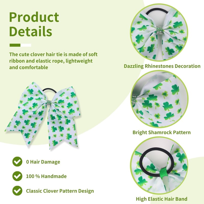 - 【Beautiful Decoration】Whether it's a simple hairstyle or a complicated braid, these glitter shamrock ribbon bows can easily handle, giving your overall look more stylish and outstanding. Their bright color and sparkly pattern will complement your skin tone and hair color, can easily match various kinds of outfits and bring more intense festival atmosphere.